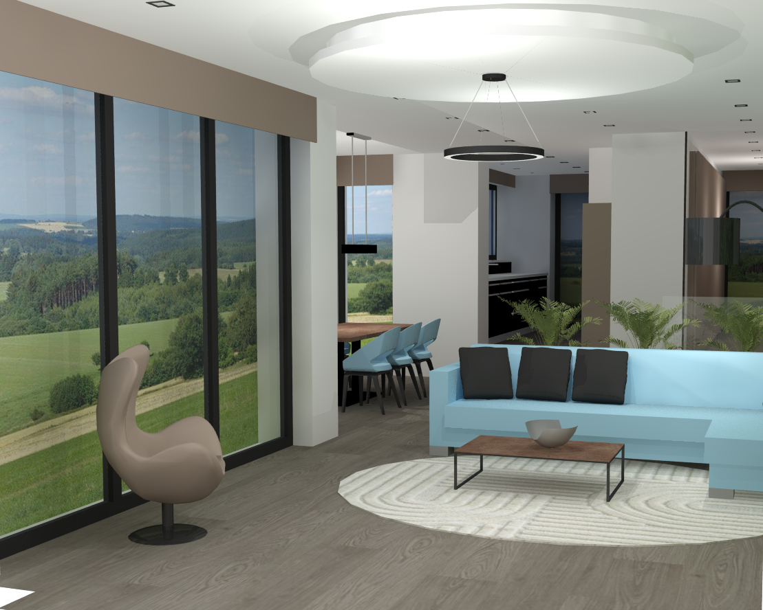 Když mě sympatický mladý pár požádal o návrh interiéru, byla hotová jenom hrubá stavba, takže jsme měli čas a prostor si interiér pořádně promyslet. Zákaznice měla poměrně jasnou představu, dolaďovali jsme hlavně celkové působení interiéru.